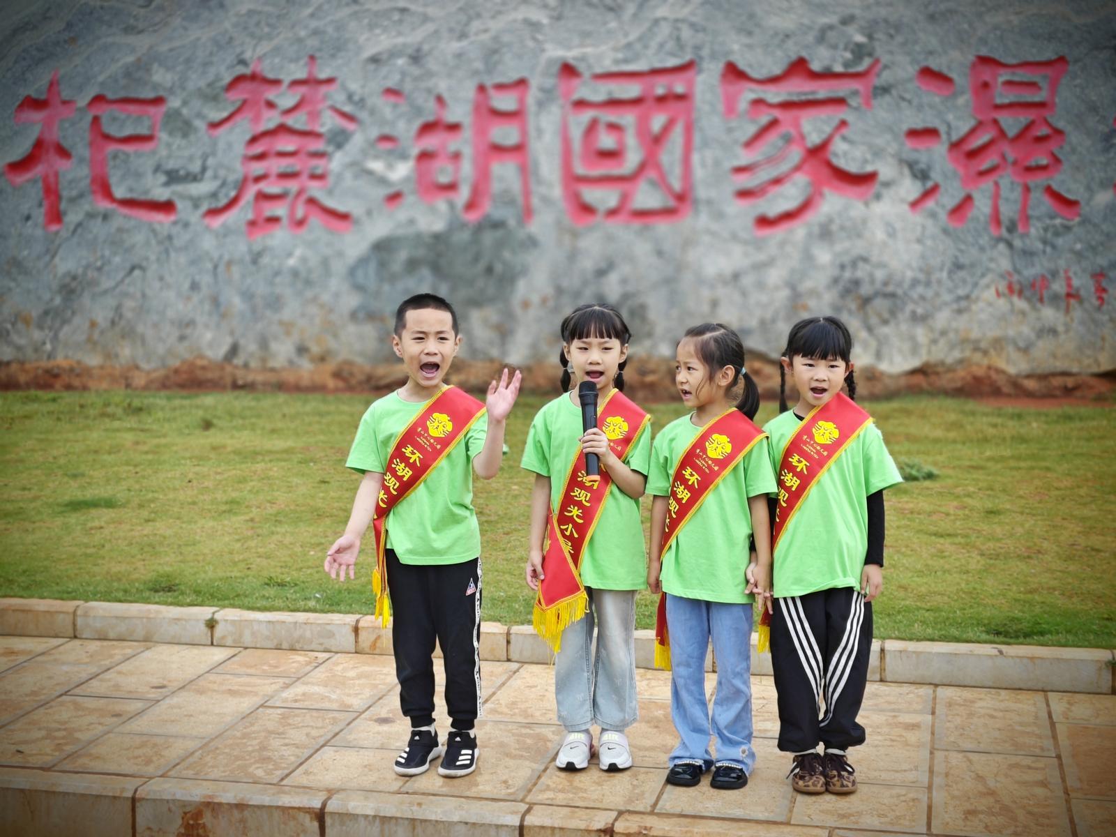 當(dāng)天,萌娃“導(dǎo)游”們手持彩旗,身披綬帶,分坐在10輛觀光車上,先后前往趙家大溝、杞麓湖國家濕地公園、藻水分離站、馬家灣出水口等地,用稚嫩的童音向參加啟動儀式的人員介紹通海的歷史文化、風(fēng)土人情、治湖舉措等,在文化與實(shí)踐的相互交融中,感受家鄉(xiāng)特色,培養(yǎng)熱愛家鄉(xiāng)的情感。