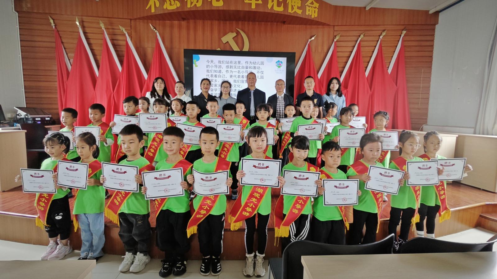 近日,通??h秀山中心幼兒園“‘童’心同行,‘鄉(xiāng)’約振興”環(huán)湖小導(dǎo)游項(xiàng)目啟動儀式在秀山街道大樹社區(qū)舉行,30名秀山中心幼兒園的萌娃被聘為環(huán)湖小導(dǎo)游,“持證”上崗,開啟宣傳推介美麗通海的首秀。