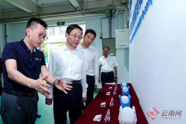 王予波在云南藍(lán)晶科技有限公司觀看企業(yè)產(chǎn)品展示。記者 胡妤雅 攝