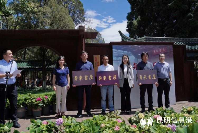 昆明信息港訊 記者楊雁 雷桃飛 6月13日,昆明首個(gè)“奔來(lái)書(shū)屋”在大觀公園揭牌成立,正式開(kāi)啟“1+N”書(shū)院、書(shū)屋兩級(jí)環(huán)滇書(shū)院體系的建設(shè)。本次活動(dòng)由昆明滇池國(guó)家旅游度假區(qū)管委會(huì)主辦,邀請(qǐng)省、市相關(guān)單位領(lǐng)導(dǎo)和文化藝術(shù)界的專(zhuān)家學(xué)者參加,為大觀公園乾印堂、羅江工作室、海晏灣書(shū)屋三家“奔來(lái)書(shū)屋”授牌。