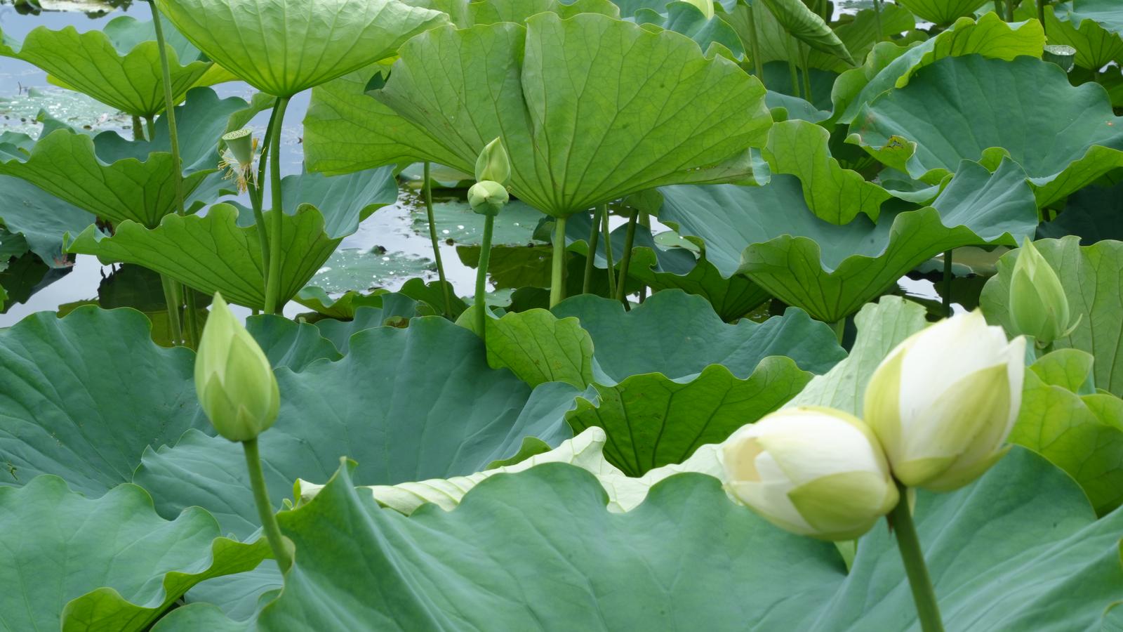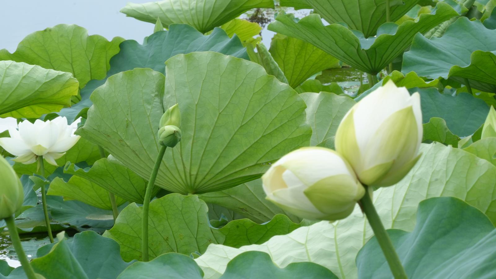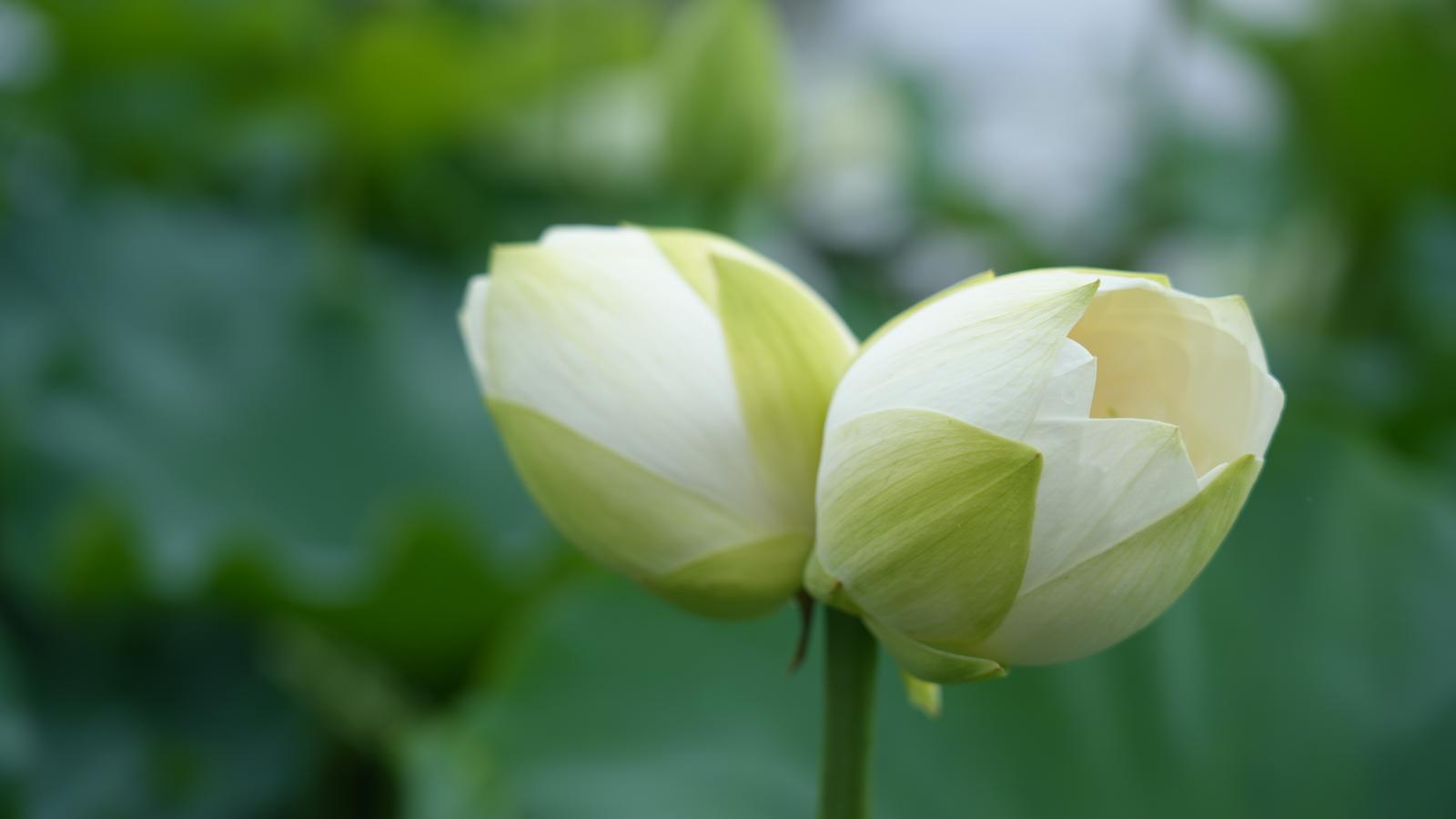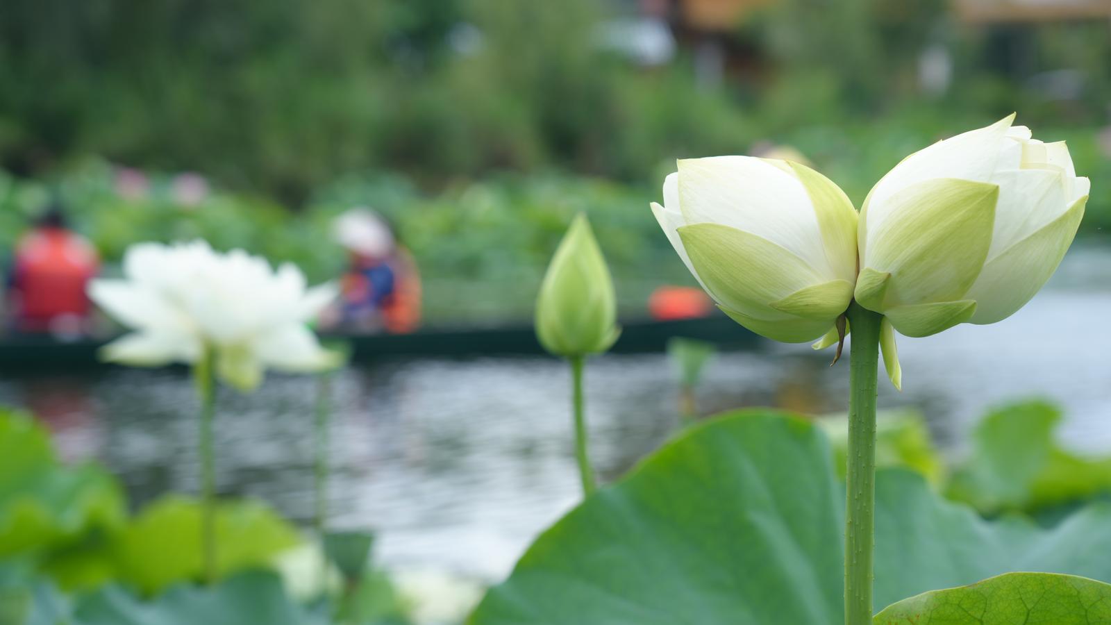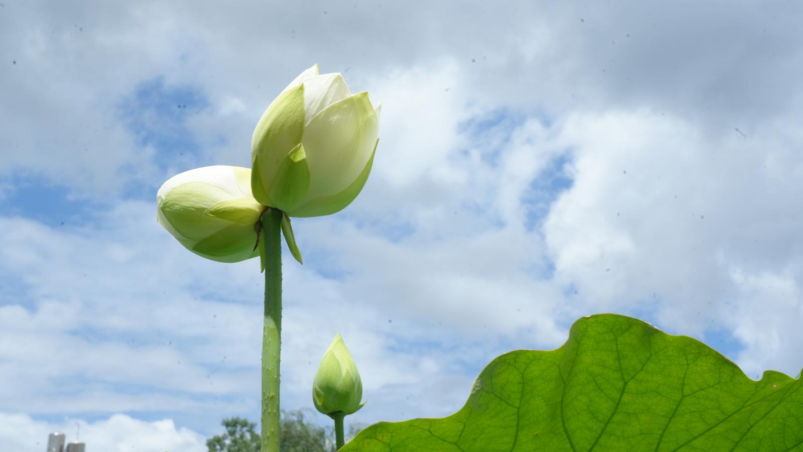 記者現(xiàn)場(chǎng)觀察發(fā)現(xiàn),這兩株并蒂蓮目前還是花苞狀態(tài),純白色的花苞緊緊相依,亭亭玉立,宛如一對(duì)孿生姐妹,在綠葉的映襯下顯得格外嬌艷。