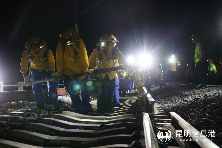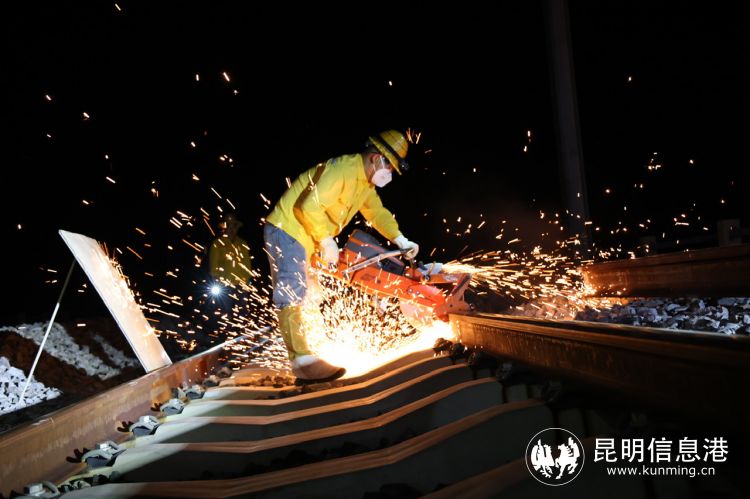 昆明信息港訊 記者上官艷君 6月19日23時(shí)許,彌蒙高鐵楷甸2號(hào)雙線特大橋上,一輛明黃色的移動(dòng)氣壓焊軌車(chē)正在將兩根即將接入軌道的新軌焊接在一起,這是中國(guó)鐵路昆明局集團(tuán)有限公司(以下簡(jiǎn)稱國(guó)鐵昆明局)首次使用大型移動(dòng)氣壓焊軌車(chē)對(duì)彌蒙高鐵開(kāi)展鋼軌焊接施工作業(yè)。