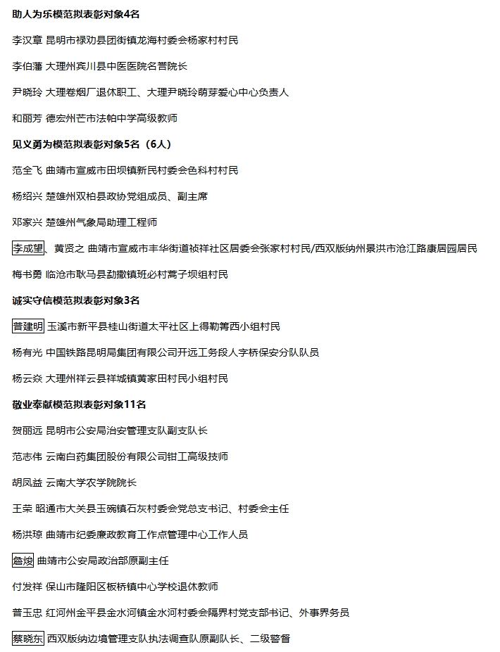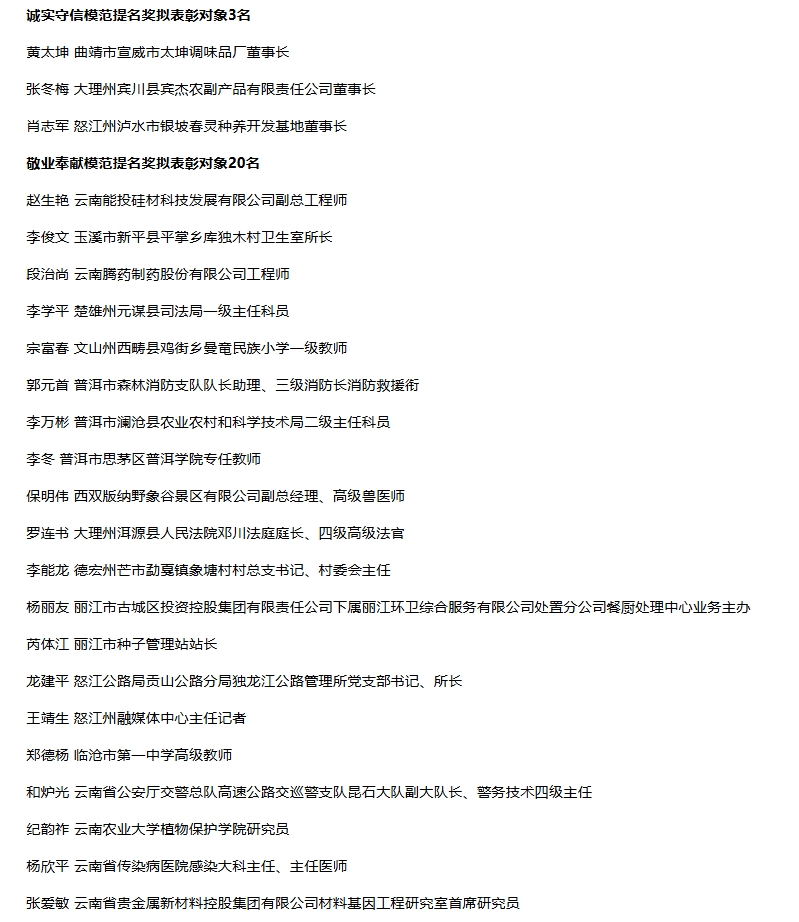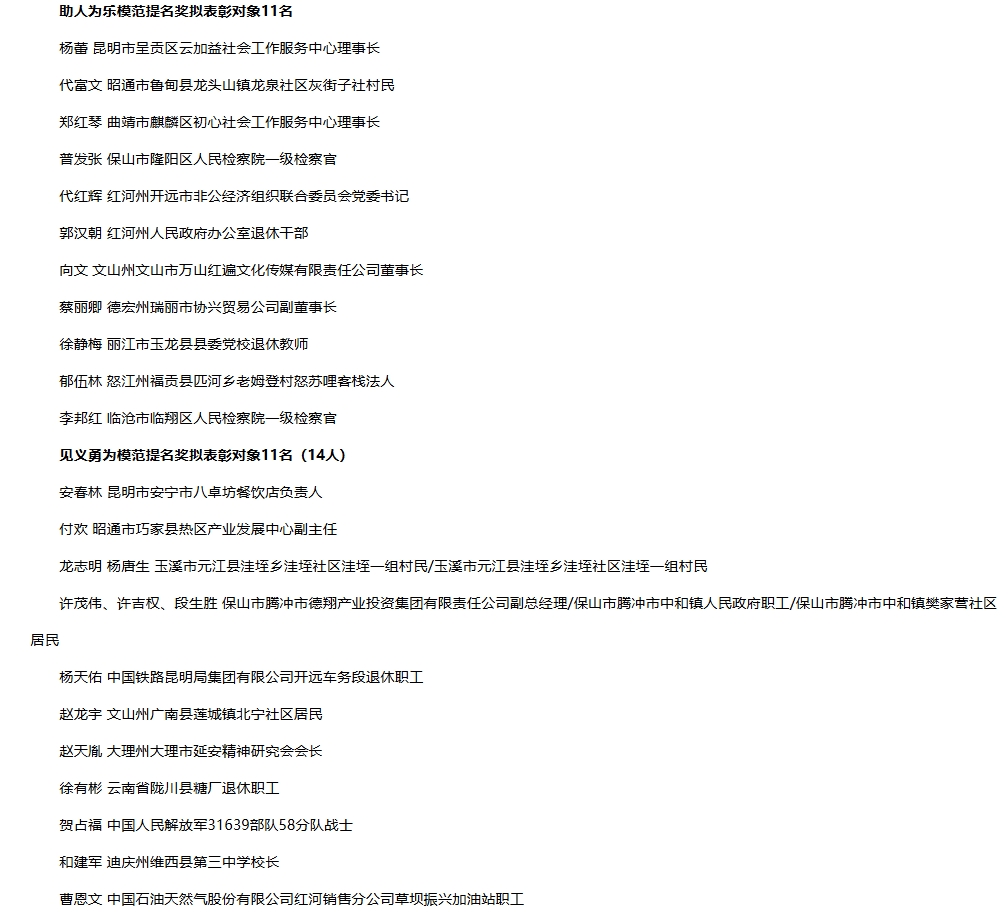 2.2023年云南省道德模范提名獎(jiǎng)擬表彰對(duì)象名單