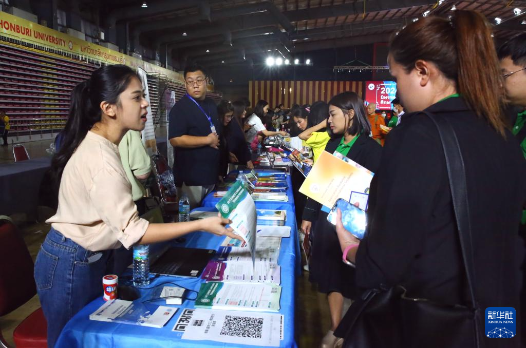 6月22日,在泰國曼谷吞武里大學(xué)舉辦的中國高等教育展上,學(xué)生在中國高校展臺前了解信息。2024中國高等教育展22日在泰國曼谷吞武里大學(xué)舉辦,來自中國的32所高校參展,吸引眾多泰國師生前來咨詢交流。