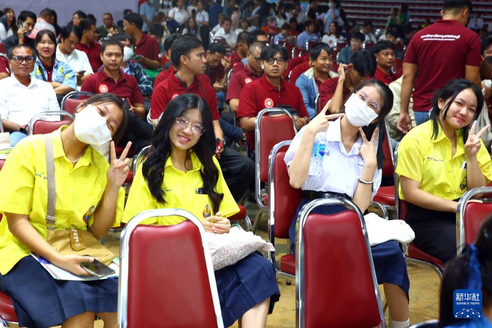 6月22日,在泰國曼谷吞武里大學(xué),學(xué)生們參加中國高等教育展開幕式。2024中國高等教育展22日在泰國曼谷吞武里大學(xué)舉辦,來自中國的32所高校參展,吸引眾多泰國師生前來咨詢交流。