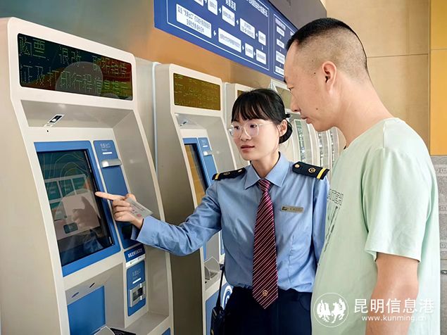 普者黑站客運(yùn)員為購(gòu)票旅客提供引導(dǎo)服務(wù)。通訊員葉恒 攝