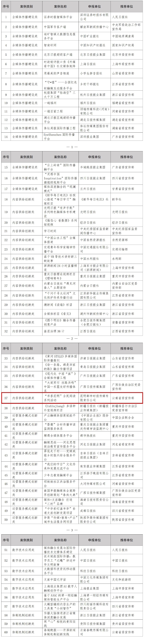 7月1日,國家新聞出版署公布第四屆中國報(bào)業(yè)深度融合發(fā)展創(chuàng)新案例名單,60個(gè)創(chuàng)新案例入選。云南省委宣傳部推薦,中共昆明市委宣傳部主辦、昆明市融媒體中心·都市時(shí)報(bào)承辦的“書香昆明”全民閱讀系列活動成功入選,為內(nèi)容供給創(chuàng)新類案例。