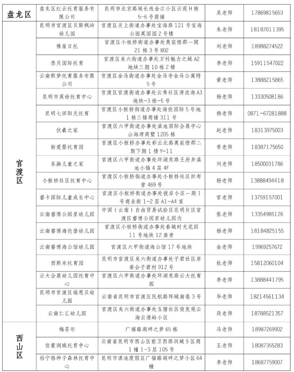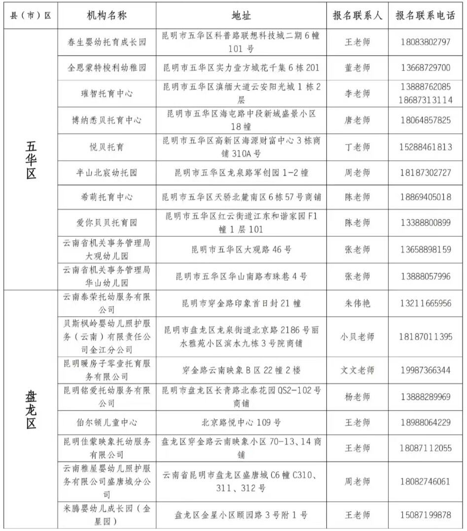 根據(jù)《中共昆明市委 昆明市人民政府印發(fā)<關于優(yōu)化生育政策促進人口長期均衡發(fā)展的實施方案>的通知》(昆發(fā)〔2023〕20號)和《昆明市人民政府辦公室 關于促進3歲以下嬰幼兒照護服務發(fā)展的實施意見》(昆政辦〔2020〕71號)等文件要求,為促進昆明市嬰幼兒照護服務規(guī)范化發(fā)展,積極推進托育機構備案工作,加強社會監(jiān)督管理,便于家長就近選擇,現(xiàn)將95家場地設施、環(huán)境衛(wèi)生、人員配備、安全管理等各項指標符合要求,通過審核,備案合格的昆明市2024年度托育機構“白名單”(詳見附件)予以公布。