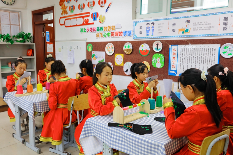 內(nèi)蒙古興安盟紅城小學的學生在上手工課(2024年6月24日攝)。新華社發(fā)(賴志強 攝)