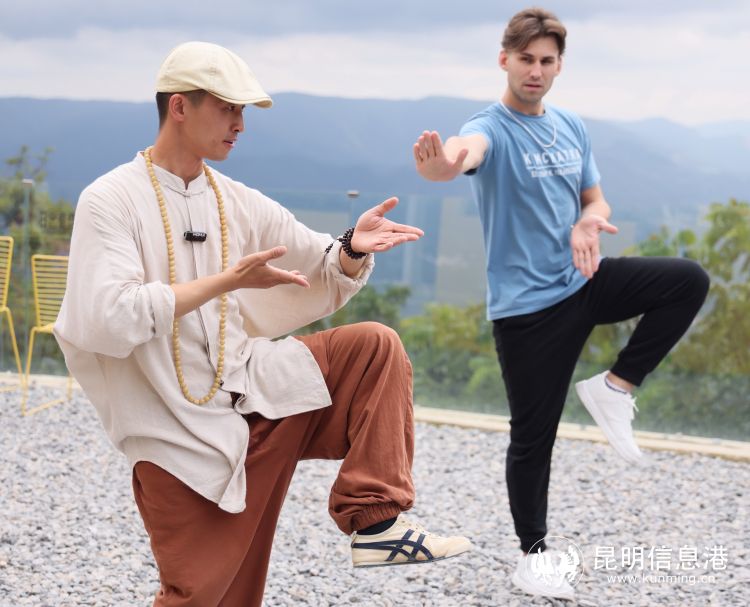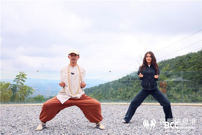 諾娃和同樣來(lái)自俄羅斯的BAKIN DENIS,隨后都跟隨謝無(wú)忌練起了太極拳。他們請(qǐng)同伴幫忙把這些拍成照片和視頻,練習(xí)完后就趕緊去翻看,甚是喜歡。