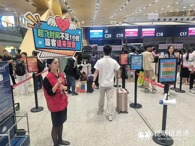 昆明信息港訊 記者上官艷君 進(jìn)入暑運(yùn)以來,昆明機(jī)場進(jìn)一步強(qiáng)化現(xiàn)場服務(wù)保障力量,三支志愿者隊伍陸續(xù)“上線”服務(wù),在航站樓內(nèi)外形成合力,確保旅客無憂出行。