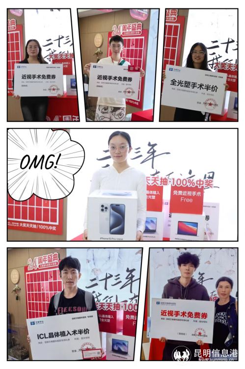 1.24周年驚喜盲盒,免費(fèi)近視手術(shù)名額,大額摘鏡減免券,蘋果、華為筆記本電腦,iPhone15pro,名牌騎行鏡、墨鏡,超多福利天天抽,中獎(jiǎng)率100%。