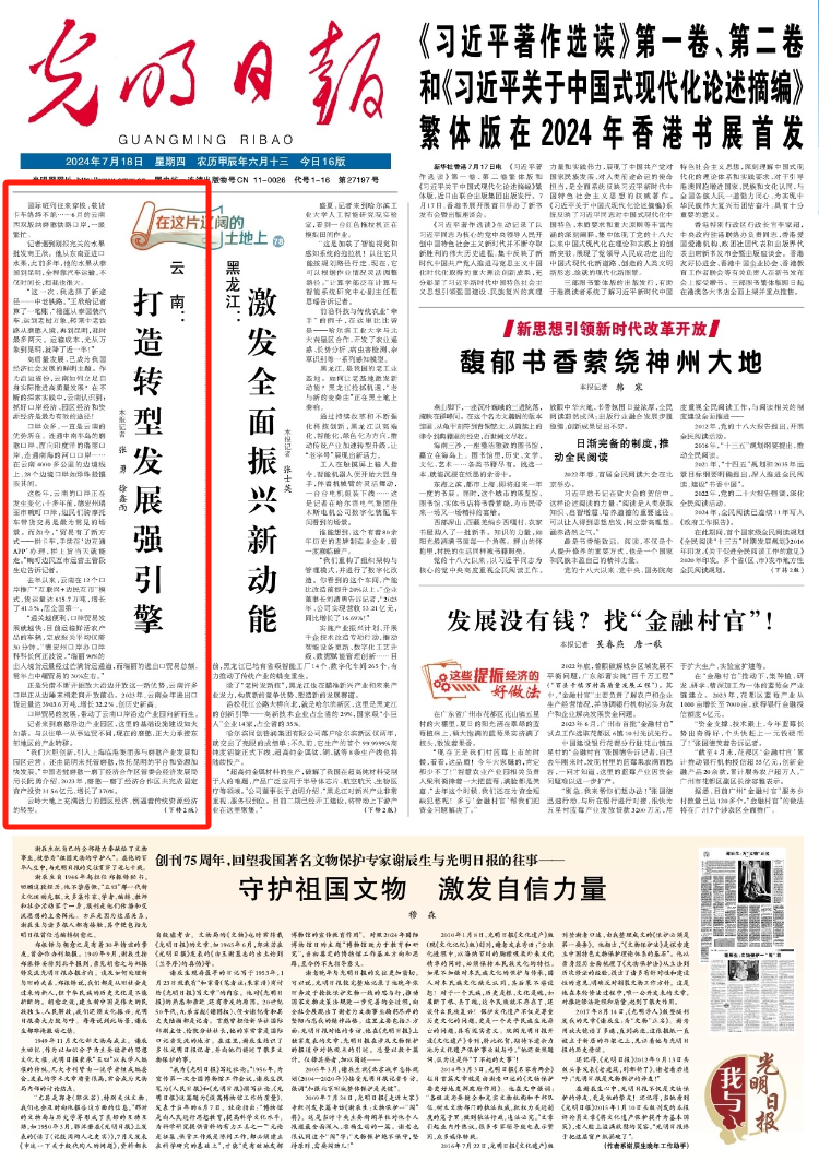 7月18日,光明日報(bào)頭版頭條刊發(fā)文章《云南:打造轉(zhuǎn)型發(fā)展強(qiáng)引擎》,點(diǎn)贊昆明托管磨憨打造產(chǎn)業(yè)發(fā)展新高地,推動經(jīng)濟(jì)高質(zhì)量發(fā)展的創(chuàng)新實(shí)踐。