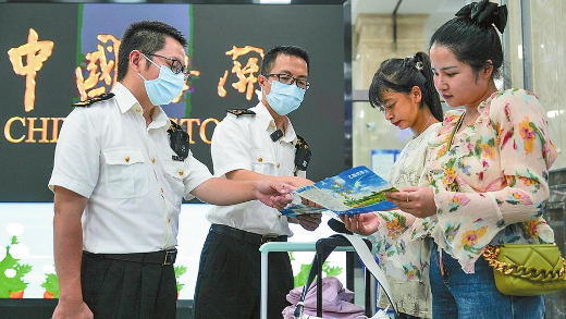 昆明海關(guān)深入推進智慧海關(guān)建設(shè)和“智關(guān)強國”行動,優(yōu)化作業(yè)流程,提升磨憨鐵路口岸智能化水平,助力實現(xiàn)“瀾湄快線”24小時到達(dá)和“鐵路快通”雙向貫通,持續(xù)提升監(jiān)管效能,優(yōu)化通關(guān)服務(wù),打造良好口岸營商環(huán)境,做好客貨通關(guān)保障工作。另外,昆明海關(guān)在磨憨鐵路口岸國際旅客大廳設(shè)置國際旅行咨詢臺,聯(lián)合鐵路、邊檢、公安等部門對列車同步開展登臨檢查,最大限度壓縮列車口岸停留時間,支持配合做好中老鐵路旅游專列開通運行工作,助推沿線旅游業(yè)不斷升溫。
