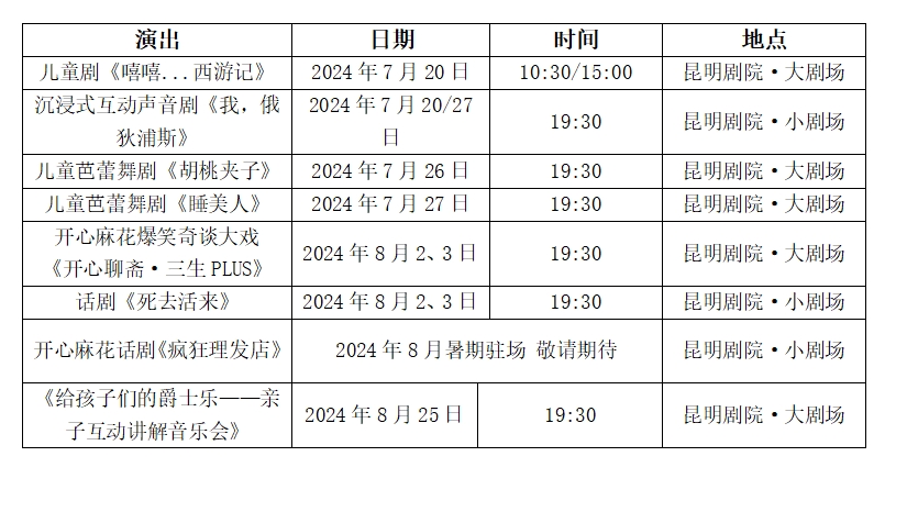 隨著昆明劇院【2024首戲演出季】和「2024悅享卡」的逐步深入,一系列精彩紛呈的劇目為觀眾呈現(xiàn)一場(chǎng)場(chǎng)難忘的藝術(shù)盛宴。在這個(gè)充滿歡笑與夢(mèng)想的暑期,以藝術(shù)之名,共赴一場(chǎng)場(chǎng)感官與心靈的雙重旅行,跟隨藝術(shù)家們的無(wú)限想象上天入地、自由翱翔,享受一個(gè)難忘的藝術(shù)之夏。