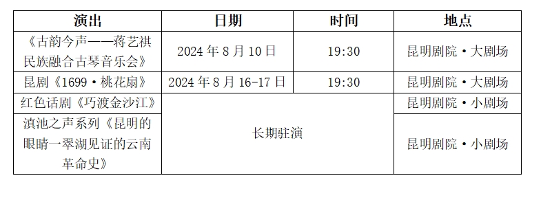 今夏傳統(tǒng)和古韻也將為春城增添絲絲縷縷清幽涼意:《古韻今聲蔣藝祺民族融合古琴音樂(lè)會(huì)》在保留傳統(tǒng)琴樂(lè)之古韻的同時(shí),融入了現(xiàn)代演出形式,并且首次將古琴與云南民族音樂(lè)元素融合到一起進(jìn)行創(chuàng)編,開(kāi)創(chuàng)了古琴與少數(shù)民族音樂(lè)交流融合的先河;江蘇省演藝集團(tuán)昆劇院攜單雯、施夏明領(lǐng)銜主演,江蘇省昆第四代精銳攜昆五新秀共同演繹明清傳奇的壓卷之作《1699·桃花扇》,亂世離合中,一對(duì)才子佳人想團(tuán)圓卻不能團(tuán)圓,一把桃花扇,一段明清傳奇,一幅山河破碎的歷史卷軸,由此呈現(xiàn)在觀眾面前;更有紅色話劇《巧渡金沙江》,滇池之聲系列《昆明的眼睛一翠湖見(jiàn)證的云南革命史》兩部口碑立作繼續(xù)駐場(chǎng)演出,檔期靈活提供豐富選擇,是昆明觀眾更加了解這座城市和省外觀眾了解昆明歷史文化名城歷史的一扇窗口。