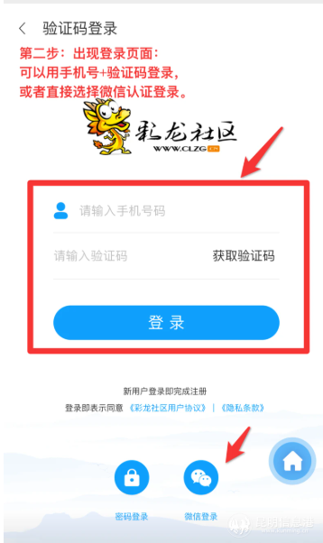2、隨后出現(xiàn)登錄頁面——可以用手機號+驗證碼登錄,或者直接選擇微信認證登錄
