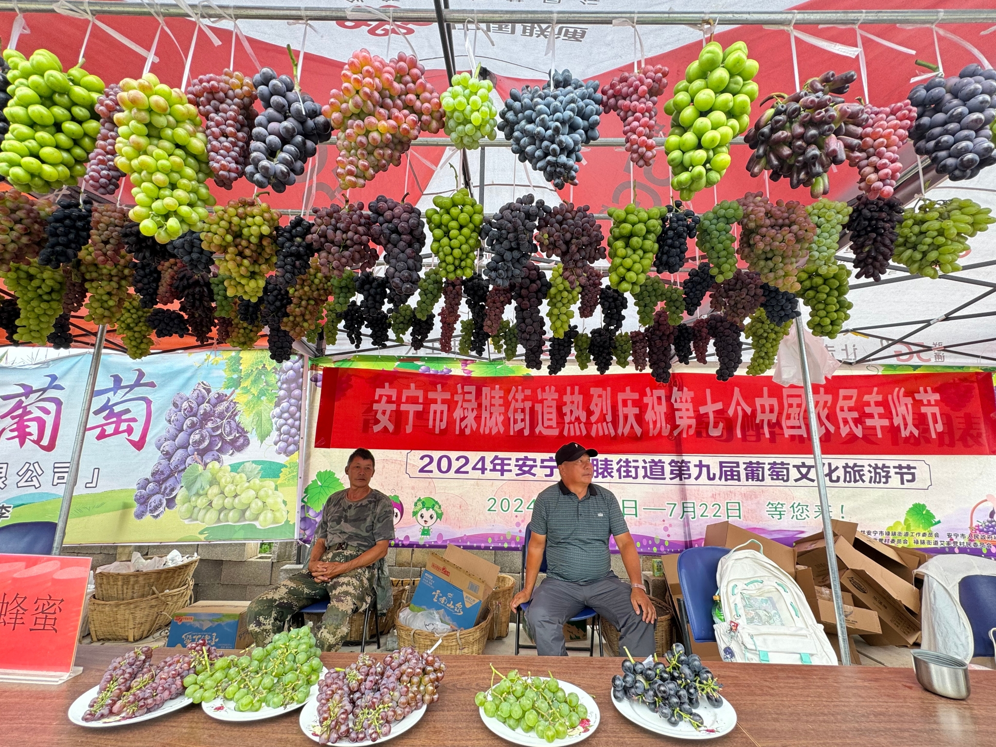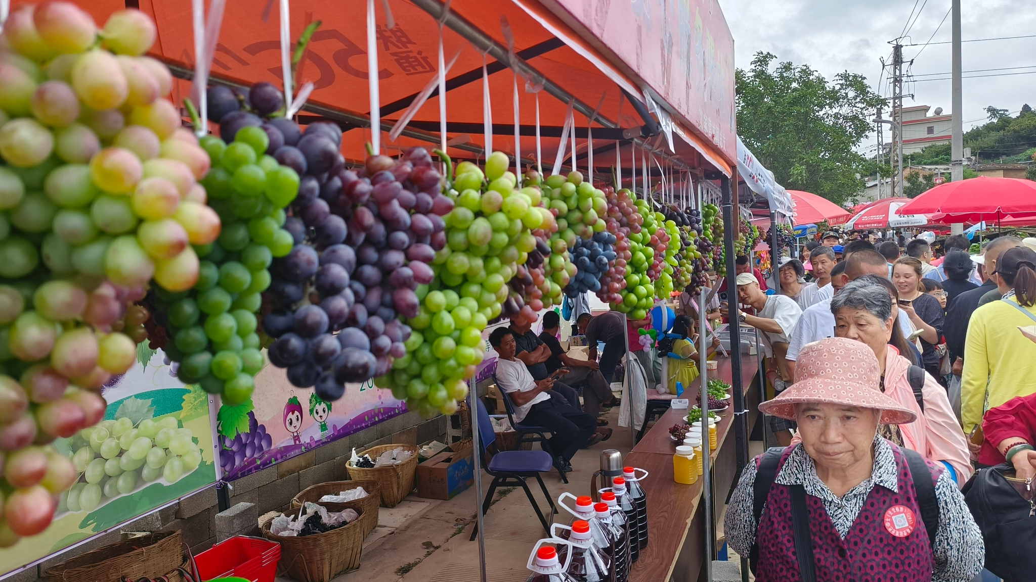 本屆葡萄文化旅游節(jié)除了主會場有好看、好吃的外,組委會還把主會場周邊的4條景觀長廊裝點一新,設(shè)立“繽紛夏日”“歲稔年豐”“生態(tài)農(nóng)特展示一條街”“春華秋實”,并在長廊中設(shè)置“露天KTV”“水果蹲”“國粹漢字大比拼”“大胃王之吃葡萄比賽”“廣場舞大賽”“攝影大賽”等互動活動,只要按活動規(guī)則完成任務(wù),即可獲得精美獎品一份。當(dāng)天下午的徒手“渾水摸魚”“徒手捉鴨”活動吸引了大量附近村民及游客共同參與,大家紛紛跳到水塘中摸魚抓鴨,抓到的“戰(zhàn)利品”免費帶走,參與者們臉上洋溢著豐收的喜悅,圍觀的群眾也看得樂呵呵。本次葡萄節(jié)主活動日期間,還有優(yōu)惠福利大放送,組委會與戰(zhàn)略合作伙伴“中通快遞”“圓通快遞”聯(lián)合為廣大游客免快遞費冷鏈寄送葡萄。今年祿脿葡萄節(jié)開幕系列活動將比往年的2天再增加1天,持續(xù)至7月22日。