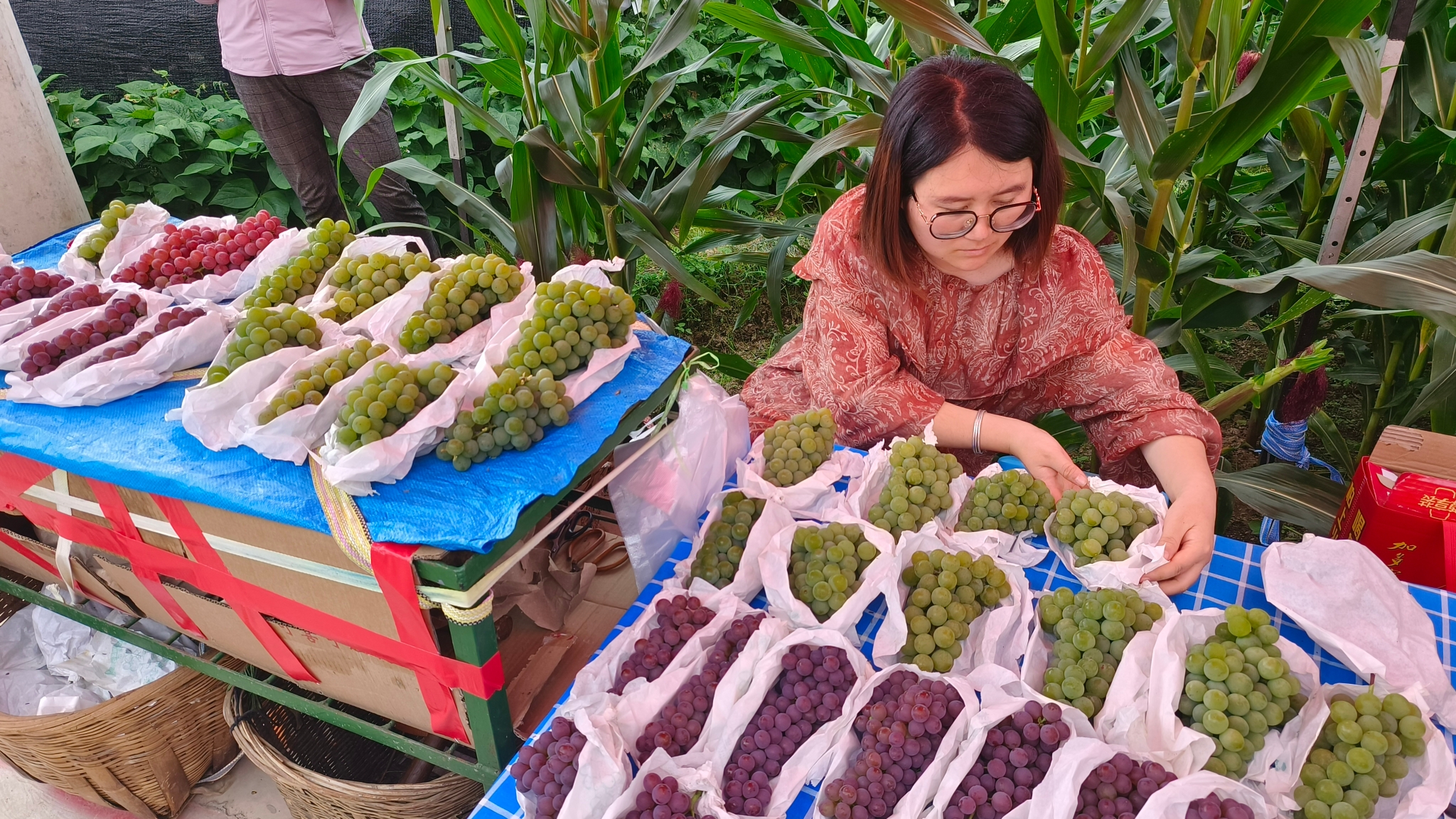 今年,祿脿葡萄核心產(chǎn)區(qū)艾家營村委會預(yù)計產(chǎn)出葡萄可達3250噸,產(chǎn)值預(yù)計3500萬。在當(dāng)?shù)胤N植的20余個早、中、晚熟品系葡萄中,形成了以“維娜莎”“康能無核”兩個品種為代表的艾家營鮮食葡萄品牌。依托優(yōu)美的生態(tài)環(huán)境和良好的區(qū)位優(yōu)勢,葡萄飄香的祿脿正吸引大批國內(nèi)外客商紛至沓來。得益于葡萄種植,祿脿葡萄主產(chǎn)區(qū)艾家營村人均純收入從2000年的2360元提升到2023年的22500元,葡萄產(chǎn)業(yè)逐步成為艾家營村邁向“對美好生活的向往”的鋪路黃金石。