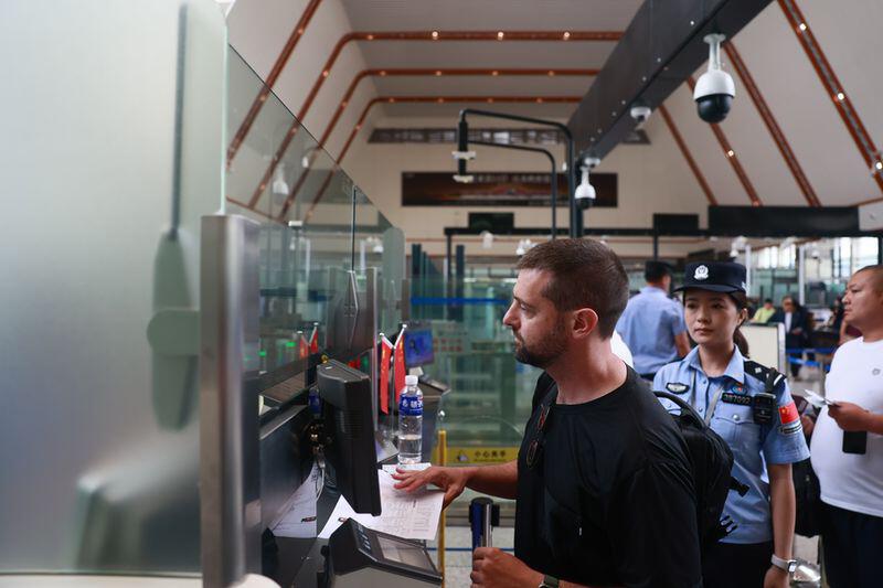 據(jù)磨憨出入境邊防檢查站鐵路口岸執(zhí)勤專班負責人孟濤介紹:為有效應對144小時過境免簽政,專班高度重視,積極組織民警認真學習外國人申請144過境免簽證的適用條件及相關政策規(guī)定,強化人員檢查、核查和詢問培訓,前置外國臨時入境卡片填寫點,在旅檢現(xiàn)場開通“144小時過境通道”,加大現(xiàn)場警力投入,開足旅檢通道,選派英語專業(yè)民警組成“免簽服務先鋒隊”,及時引導符合免簽的出入境外國旅客快速順暢入境,同時,還在口岸現(xiàn)場張貼外國人網(wǎng)上支付宣傳資料,為外國人提供法律政策、民俗風情、旅游美食等方面的咨詢。