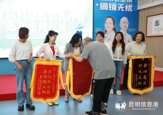 昆明信息港訊 記者姚仲恒 日前,五華區(qū)工商業(yè)聯(lián)合會與昆明眼科醫(yī)院攜手,成功救治5位斜視兒童。經(jīng)過醫(yī)療團隊的診治與護理,5名兒童于7月24日康復出院。出院儀式上,受助患者及其家屬手捧錦旗,向所有愛心人士表示感謝。