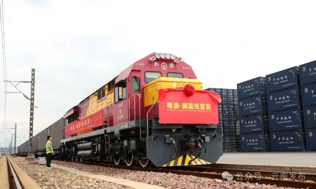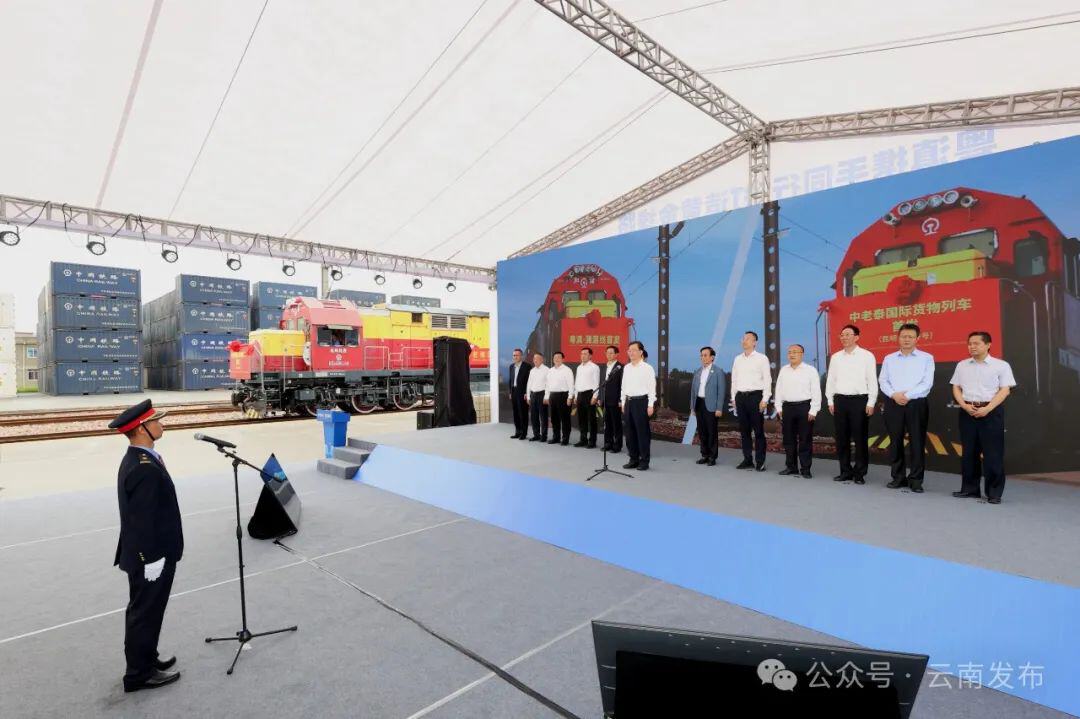 7月24日,“粵滇·瀾湄線”國際貨運(yùn)班列暨中老泰國際貨物列車(昆明—曼谷號)從昆明首發(fā)。