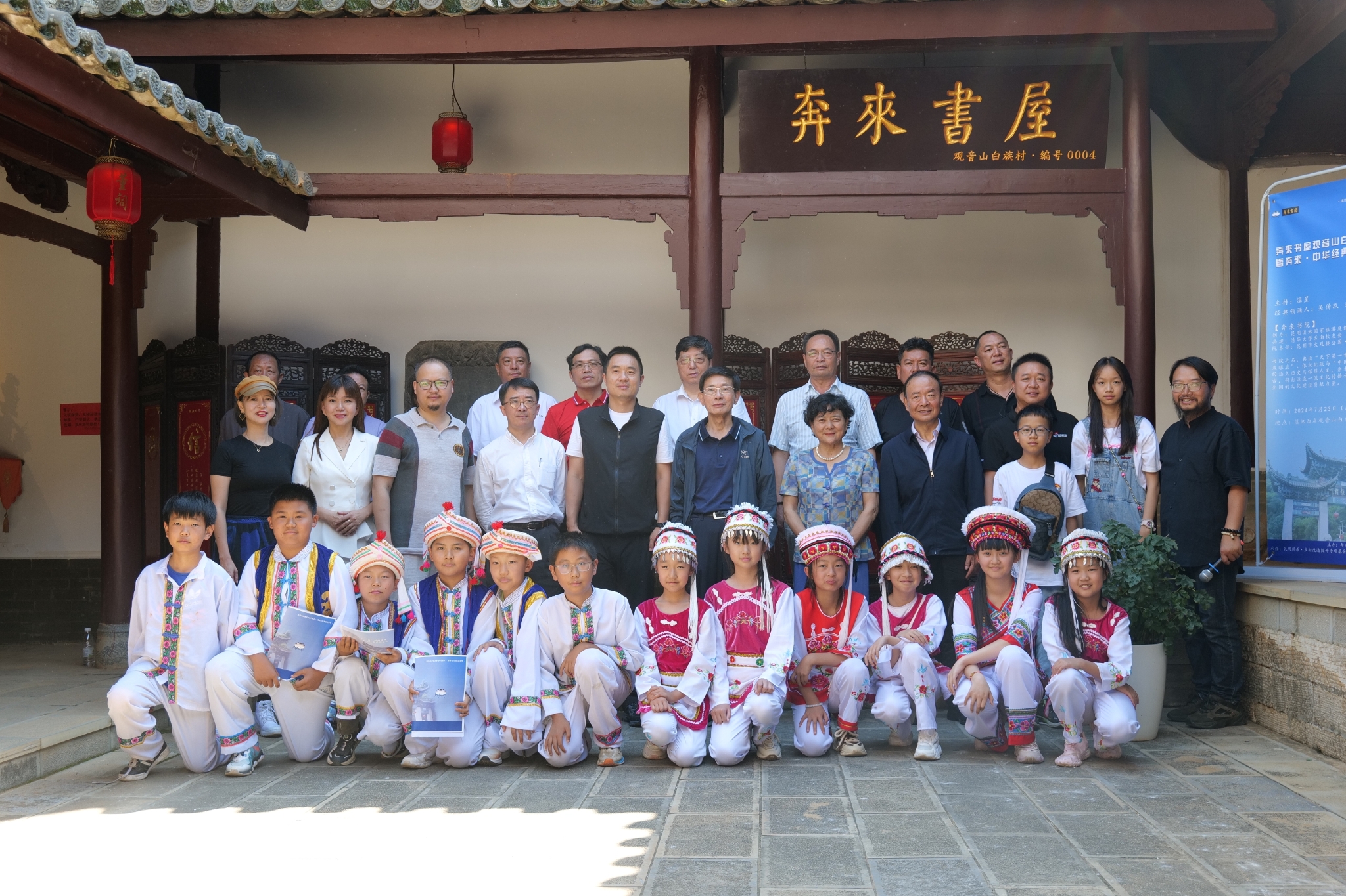 此次活動(dòng)期間,還掛牌成立了“觀音山奔來(lái)書屋”,該書屋是由昆明滇池國(guó)家旅游度假區(qū)管委會(huì)、新浪云南聯(lián)合創(chuàng)辦的“奔來(lái)書院”的文化品牌,成為昆明市第四個(gè)“奔來(lái)書屋”。掛牌儀式上,由吳傳玖、汪葉菊、李麗昆擔(dān)任“經(jīng)典領(lǐng)誦人”,分別帶領(lǐng)觀音山村12名少數(shù)民族孩子誦讀經(jīng)典。