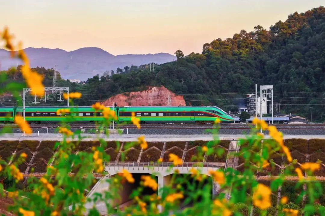 列車行駛在中老鐵路上。