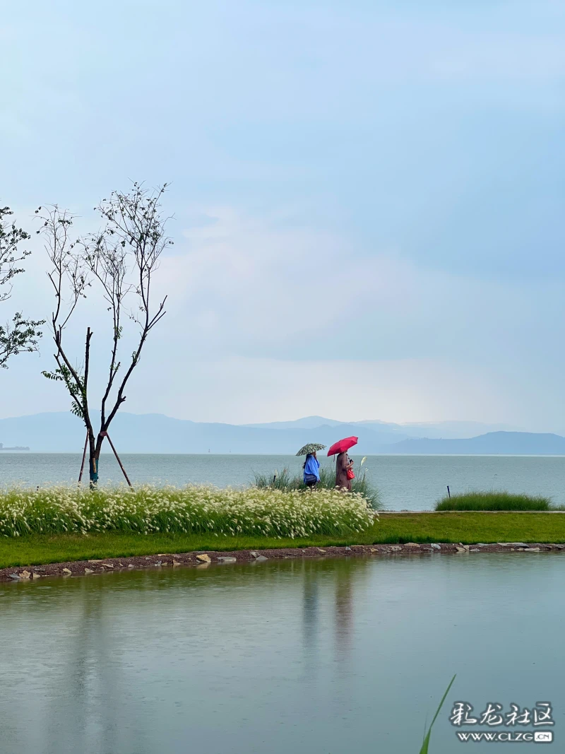 我們從村里去往滇池的路上,下起了蒙蒙細雨,煙雨里的滇池,夢幻迷茫,以疏離的景致示人,多少有點“猶抱琵琶半遮面”嬌羞感。