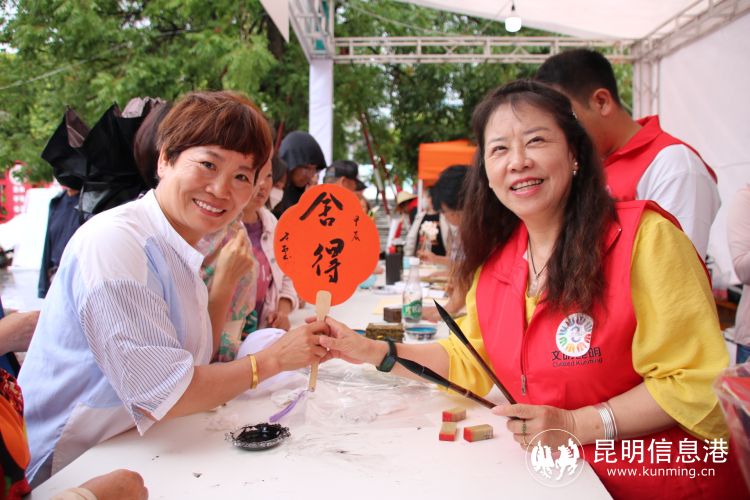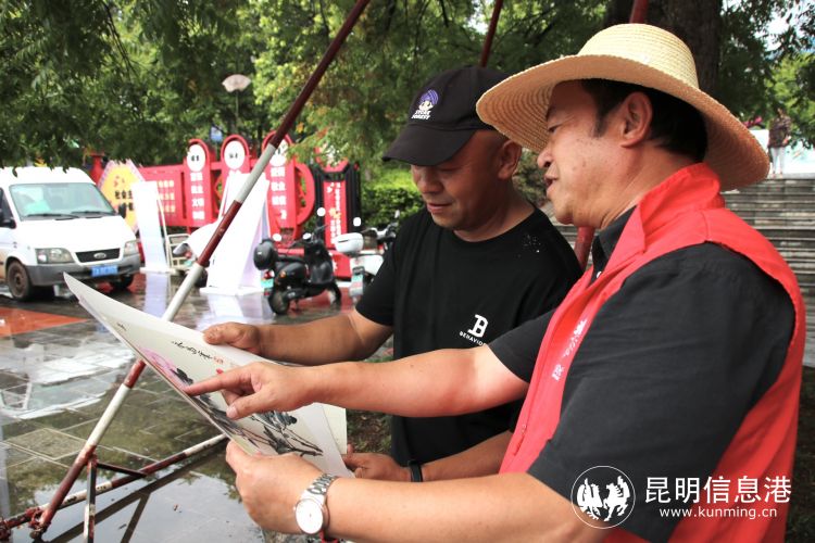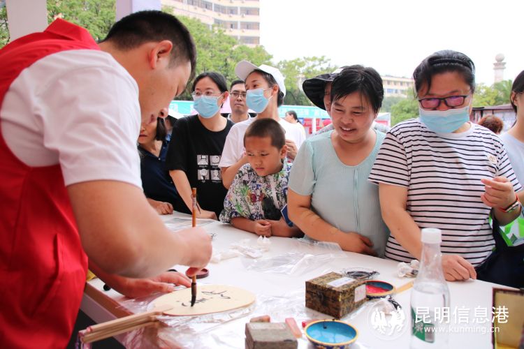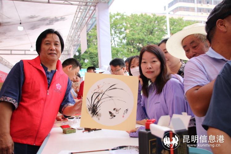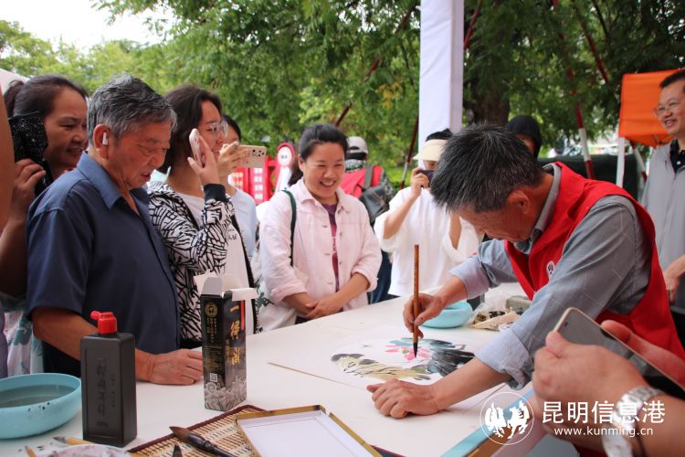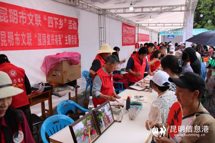 昆明信息港訊 記者甘凌菲 7月30日,昆明市2024年文化科技衛(wèi)生法律“四下鄉(xiāng)”活動在石林縣鹿阜街道雙龍廣場舉行,昆明市文聯(lián)積極響應(yīng)參與,組織了10余名書法家、美術(shù)家、攝影家共同前往,用寫扇面、送字畫、免費拍攝合影等惠民舉措,打通文藝服務(wù)基層群眾的“最后一公里”,把精彩的文藝作品送到了群眾家門口。