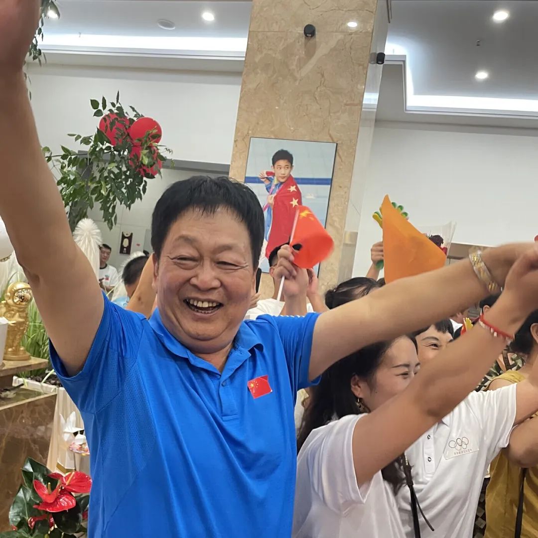 在楊昊與隊友練俊杰為中國隊鎖定巴黎奧運會跳水男子雙人10米跳臺金牌后,全程觀看比賽直播的楊昊家人一躍而起,相擁而泣。7月29日,在蒙自市楊昊的家中,家人、體校教練及其親戚朋友一起見證了他的榮譽時刻,隔著屏幕共唱國歌。