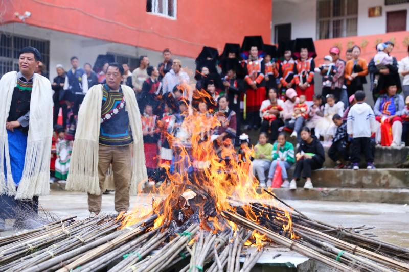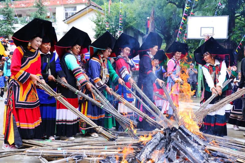火把節(jié)是彝族重要的傳統(tǒng)節(jié)日之一。當(dāng)天早晨,村民們不約而同地準備好火把,來到村委會籃球場,在傳統(tǒng)祭祀儀式中點燃各自的火把,共同祈愿國泰民安,安居樂業(yè),五谷豐登。