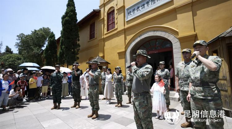 “聽吧新征程號角吹響,強軍目標(biāo)召喚在前方.......”“團結(jié)就是力量,團結(jié)就是力量,這力量是鐵、這力量是鋼......”八一前夕,一首首鏗鏘有力的軍歌以快閃的形式在云南民族村、昆明長水機場、云南陸軍講武堂等城市地標(biāo)唱響,點燃了來自全國各地游客的熱情,他們紛紛停下腳步,加入到跟唱的隊伍。