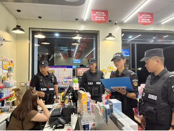 “大姐,您好,我們是通??h公安局巡特警大隊(duì)民警,根據(jù)近期社會(huì)治安情況,了解一下您店鋪內(nèi)是否安裝監(jiān)控,鎖是否牢固、最近有無被盜情況......,請(qǐng)您做好防范,夜間請(qǐng)將現(xiàn)金收好,不要擺放在店鋪內(nèi),名煙名酒等貴重物品放在柜子里鎖起來,避免財(cái)產(chǎn)損失,遇到問題請(qǐng)及時(shí)報(bào)警!”“晚上看見你們?cè)诖蠼稚涎策?,心里面就覺得特別踏實(shí)”巡特警大隊(duì)準(zhǔn)確把握夏季社會(huì)治安規(guī)律和夜間警情特點(diǎn),堅(jiān)持“以防為主、宣防結(jié)合”的工作思路,結(jié)合近期轄區(qū)內(nèi)社會(huì)治安特點(diǎn),組織警力深入轄區(qū)商鋪開展安全宣傳,以群眾“看得見、容易懂、記得住”的形式向群眾廣泛開展防電信詐騙、防盜竊、防火、防毒品、交通安全等知識(shí),進(jìn)一步提升主動(dòng)防范的廣度、深度,讓安全理念深入人心,做到以宣促防,筑牢夏季“防護(hù)網(wǎng)”。給群眾看得見的安全感,目前,共對(duì)超市、零食小吃店、水果店等城區(qū)商鋪開展入戶宣傳100余家,對(duì)城東、黃龍、六一等夜市小吃攤開展宣傳32家。