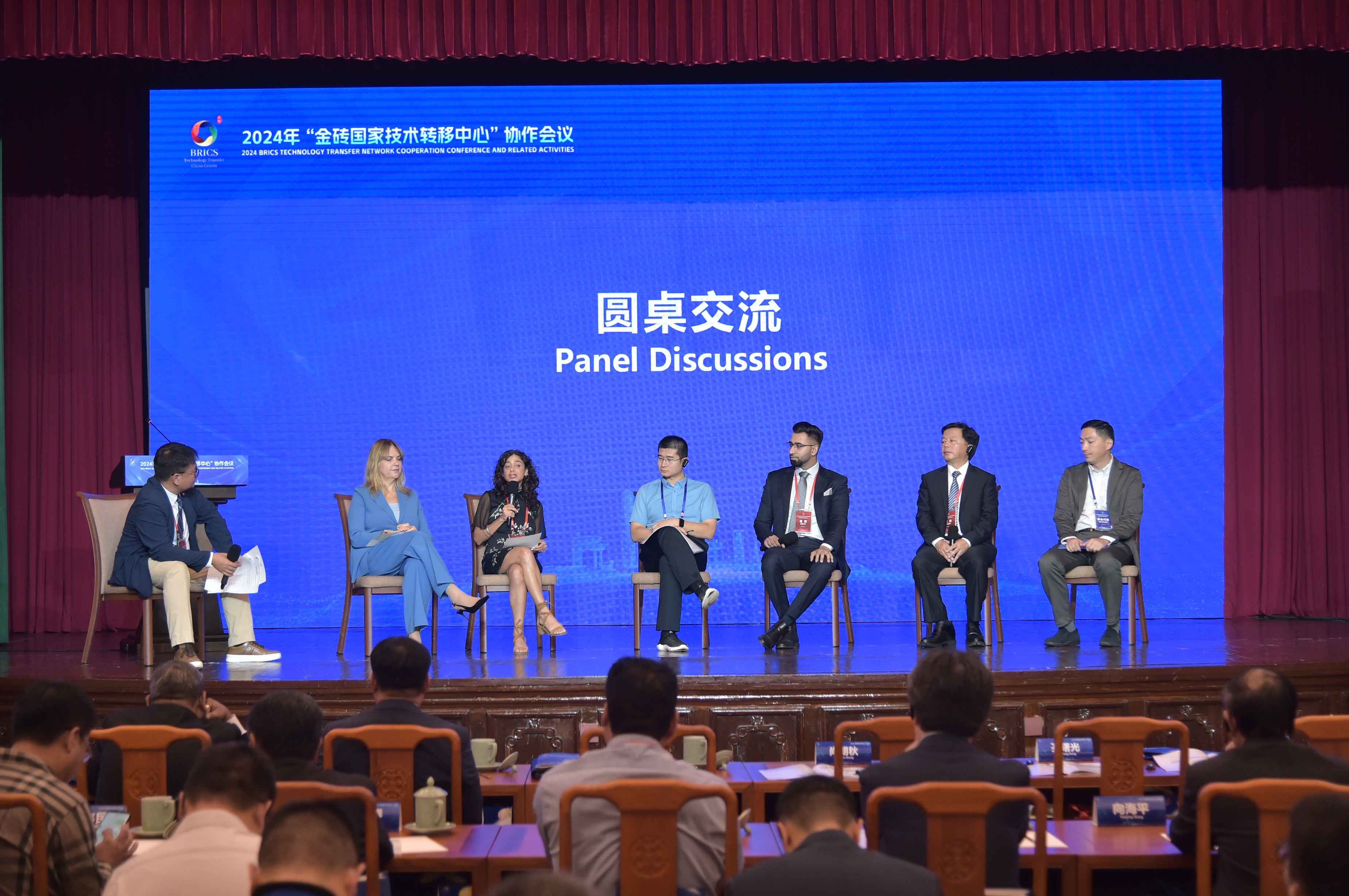 當天,圍繞如何面向金磚國家技術(shù)轉(zhuǎn)移交流合作,俄羅斯創(chuàng)新技術(shù)經(jīng)理人協(xié)會(ABIT)、俄羅斯聯(lián)邦技術(shù)轉(zhuǎn)移協(xié)會(NATT)主任Alexei Filimonov,印中技術(shù)轉(zhuǎn)移中心(ICTTC)主席Vijay Kant Mishra,推進G60科創(chuàng)走廊建設(shè)專責小組辦公室主任劉福升,中國醫(yī)學科學院醫(yī)學生物學研究所所長王佑春4位嘉賓作主旨報告,希望與各國科技工作者建立更廣泛、更緊密的科技合作伙伴關(guān)系,推動國際間科技創(chuàng)新共享共贏。圓桌交流環(huán)節(jié),業(yè)內(nèi)專家分享了金磚國家技術(shù)轉(zhuǎn)移機制建設(shè)與政策,討論生物醫(yī)藥領(lǐng)域技術(shù)轉(zhuǎn)移合作。