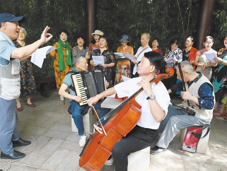 避暑人唐素輝和她的隊(duì)友每天到公園排練。李琳娥 攝