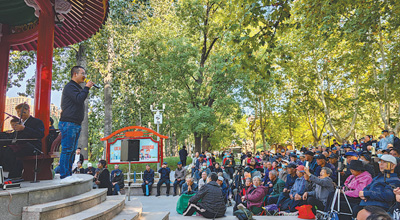 石家莊市長(zhǎng)安公園內(nèi),票友正在演唱河北梆子。