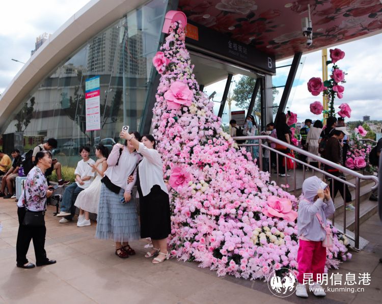 昆明地鐵4號線“金桂街站”出站后就能直達斗南花卉市場。為此,地鐵4號線金桂街站在站廳、B通道、B出口門頭進行美陳布置,營造“浪漫地鐵會客廳”。主題站廳和通道內(nèi)設(shè)置了美陳打卡點、花樣指引路、花墻、花通道、花門頭等鮮花布景,讓乘客一進入地鐵站,就能感受到撲面而來的浪漫氣息。此外,8月10日七夕節(jié)當(dāng)天,還將會在斗南站、昆明南火車站、菊華站、火車北站、大樹營站、金桂街站隨機派送萬枝鮮花,還會為金桂街站進出站乘客準(zhǔn)備精美七夕小禮品。同時,結(jié)合七夕浪漫主題,8月9日至11日,在金桂街地鐵站點內(nèi)進行快閃表演、歌手演唱、品牌集市、掃碼派送以及手工花朵扭扭棒、漆扇制作、網(wǎng)絡(luò)平臺直播等線上、線下互動活動。