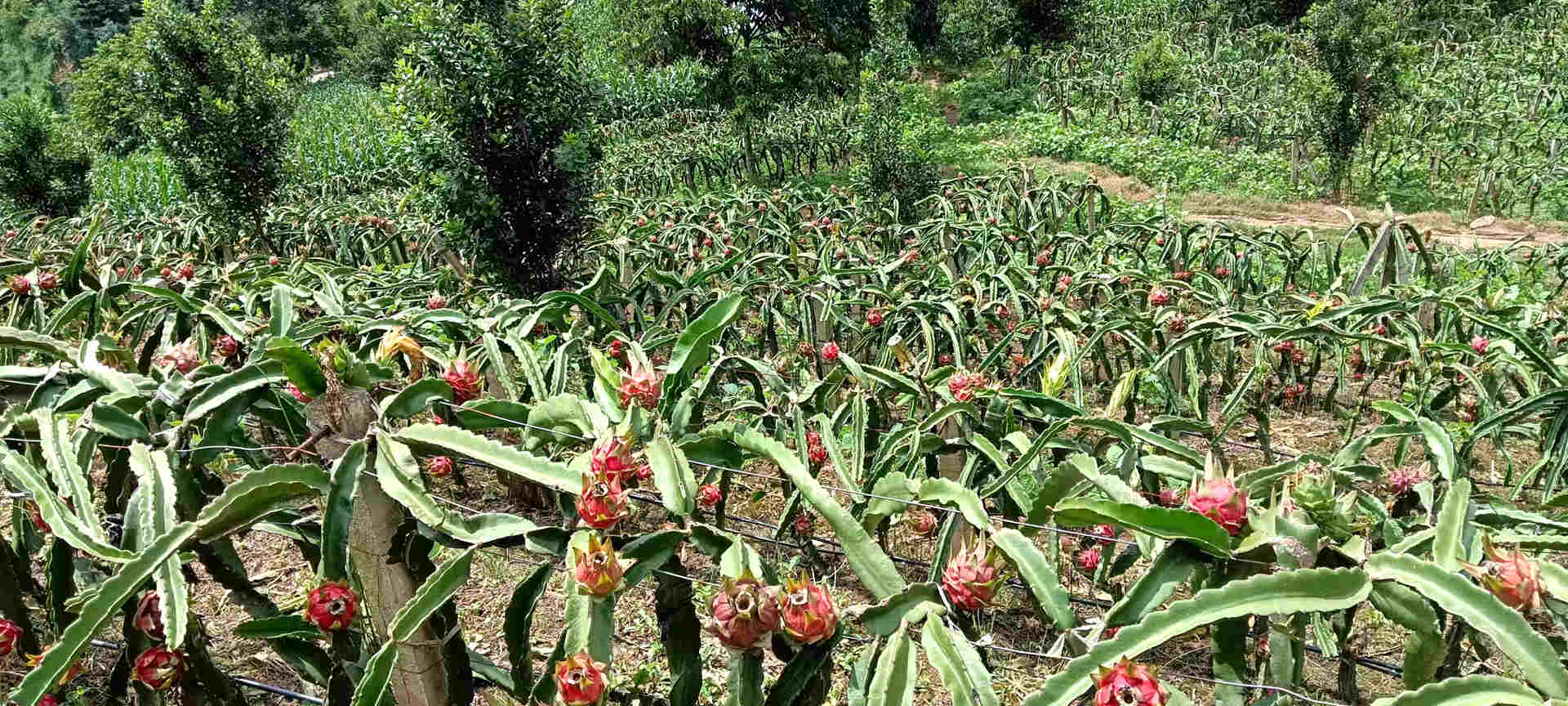 郭大寨鄉(xiāng)屬亞熱帶季風(fēng)氣候,由于生態(tài)良好、水源潔凈、光照充足,海拔較低的河谷區(qū)域?yàn)榛瘕埞峁┝诉m宜的生長環(huán)境。大田壩種植的火龍果皮薄肉厚、口感細(xì)膩,加之成熟時(shí)間較早,在本地市場上頗受歡迎,被大家親切地稱為“郭大寨人自己的火龍果”。