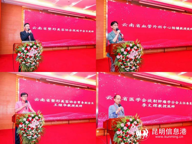 云南省整形美容協(xié)會(huì)段瑞平會(huì)長(zhǎng)、云南省血管外科中心楊鏞教授、云南省整形美容協(xié)會(huì)常務(wù)副會(huì)長(zhǎng)王繼華教授、云南省醫(yī)學(xué)會(huì)放射腫瘤學(xué)分會(huì)主任委員李文輝教授紛紛為本次大會(huì)致辭,對(duì)云南省整形美容協(xié)會(huì)微創(chuàng)與介入分會(huì)成立表示祝賀,對(duì)各位當(dāng)選人員給予肯定和期望。