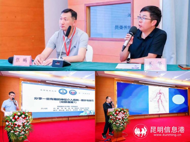 介入專題中,昆明醫(yī)科大學(xué)第一附屬醫(yī)院白鵬教授現(xiàn)場(chǎng)分享一些有趣的神經(jīng)介入病例的策略與思考,昆明醫(yī)科大學(xué)第一附屬醫(yī)院蔡紅波教授圍繞“外周血管的介入治療”展開授課,由姜華教授和張鵬教授主持。