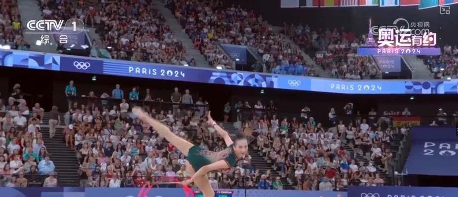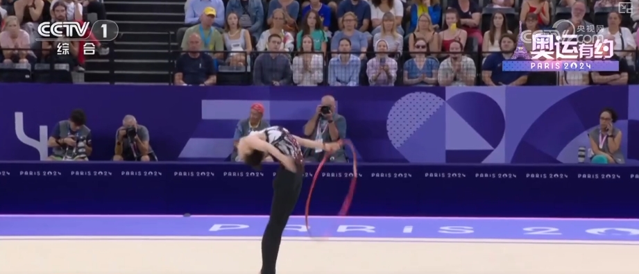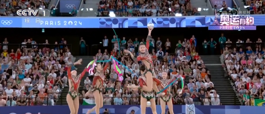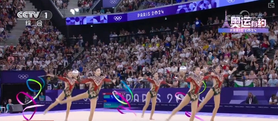 而在藝術(shù)體操女子團體全能決賽中,中國藝術(shù)體操的姑娘們以總分69.8分,拿下該項目的金牌。在決賽三帶兩球項目《鳳鳴凌霄》表演中,伴隨著動聽的音樂,姑娘們靈活地運用彩帶和球,以精準的動作、極具張力的表演,詮釋了漢唐國風(fēng)的民族美學(xué)。