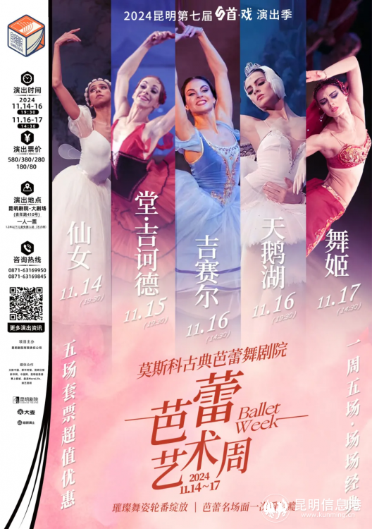 昆明劇院攜手莫斯科古典芭蕾舞團(tuán),一周獻(xiàn)上5部世界級(jí)經(jīng)典芭蕾舞劇,除知名度最高的《天鵝湖》外,還有足尖舞“開山之作”《仙女》,“芭蕾舞中的炫技之作”《堂·吉訶德》,“芭蕾之冠”《吉賽爾》,以及“難度最大的芭蕾舞劇”《舞姬》幾部經(jīng)典,璀璨舞姿輪番綻放,芭蕾名場(chǎng)面一次看過癮,感受古典芭蕾的純粹魅力。