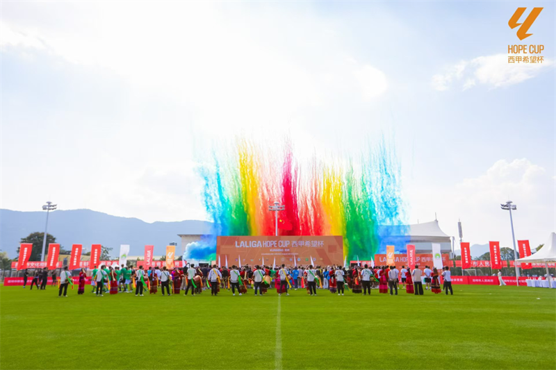 8月24日,中西兩國(guó)12支優(yōu)秀青少年梯隊(duì),400余名球員教練員以及裁判員團(tuán)隊(duì)齊聚春城昆明,云南省體育局副局長(zhǎng)余紅穎宣布西甲希望杯正式開幕,活動(dòng)現(xiàn)場(chǎng)吸引來(lái)自全國(guó)各地的近千名觀眾前來(lái)觀賽,熱情的云南人用具有獨(dú)特魅力的民族舞蹈,迎接球隊(duì)的到來(lái)。