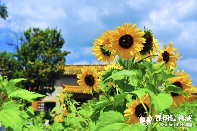 昆明信息港訊 記者段佳琪 通訊員熊合瓊 近日,位于滇池東岸的呈貢臥龍古漁村,60畝向日葵盛開,“滇池+古建筑+花?!本吧浅延^,吸引了市民及周邊地區(qū)游客紛至沓來。