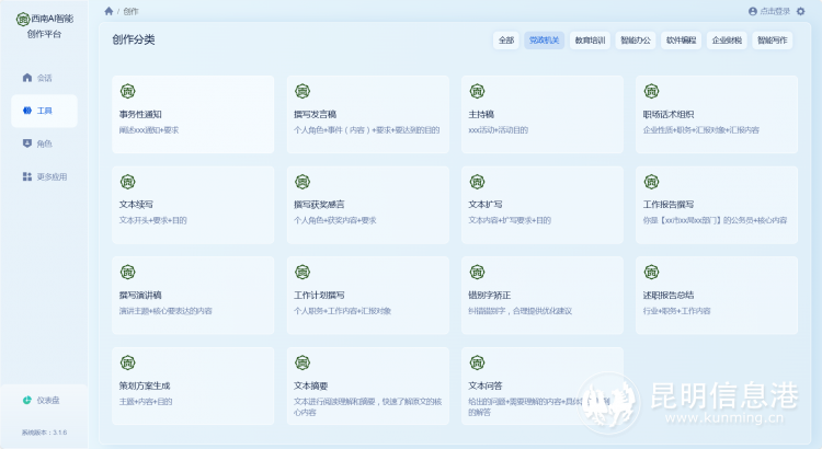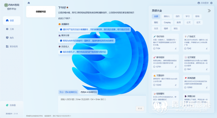 該平臺(tái)集“教育、學(xué)習(xí)與應(yīng)用”三大功能于一體,專注于培訓(xùn)人工智能訓(xùn)練師及助力辦公創(chuàng)作。經(jīng)過八個(gè)月的精心籌備,平臺(tái)成功推出了西南AI2.0和4.0版本,標(biāo)志著云南省在人工智能教育培訓(xùn)領(lǐng)域邁出了重要一步。