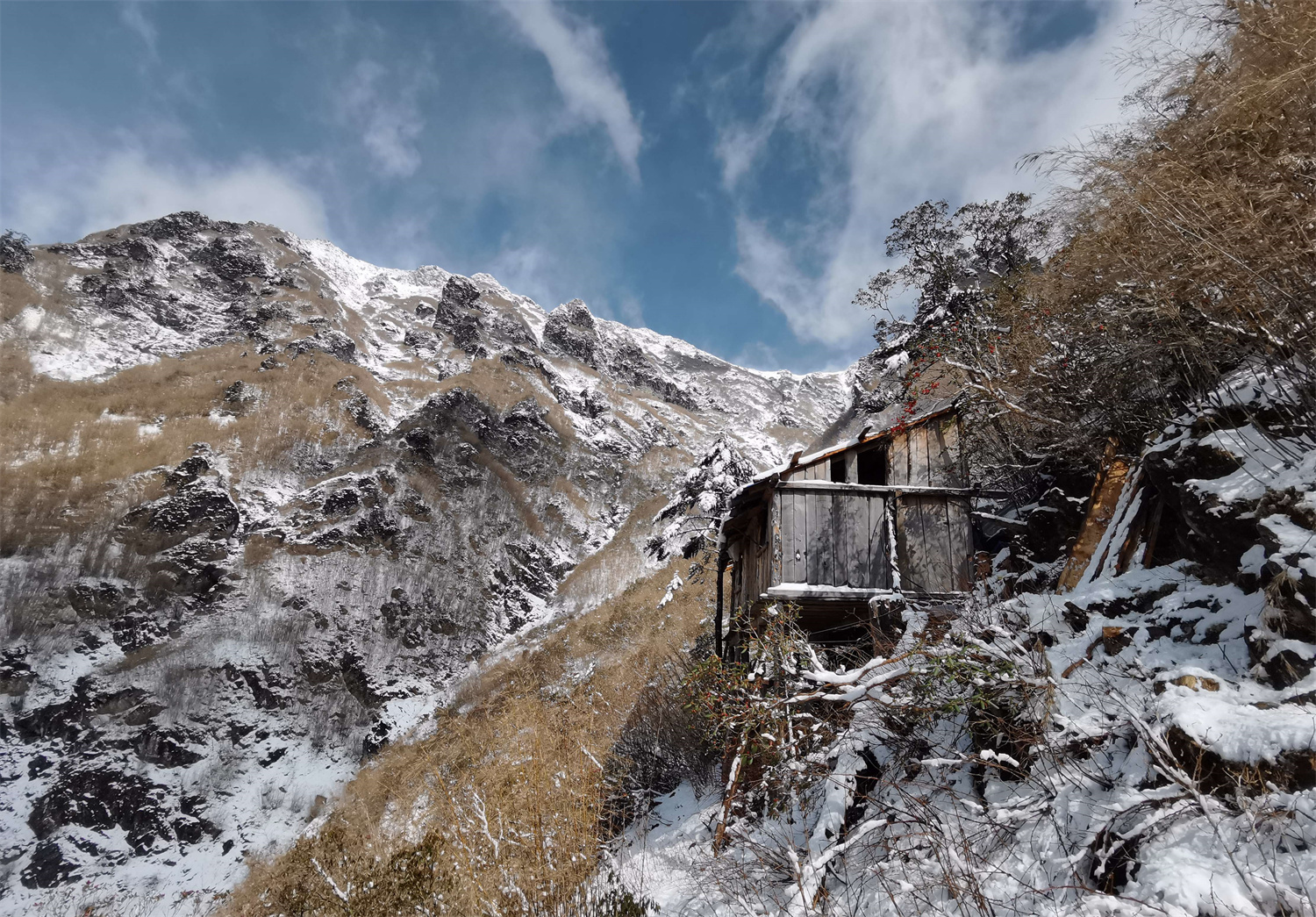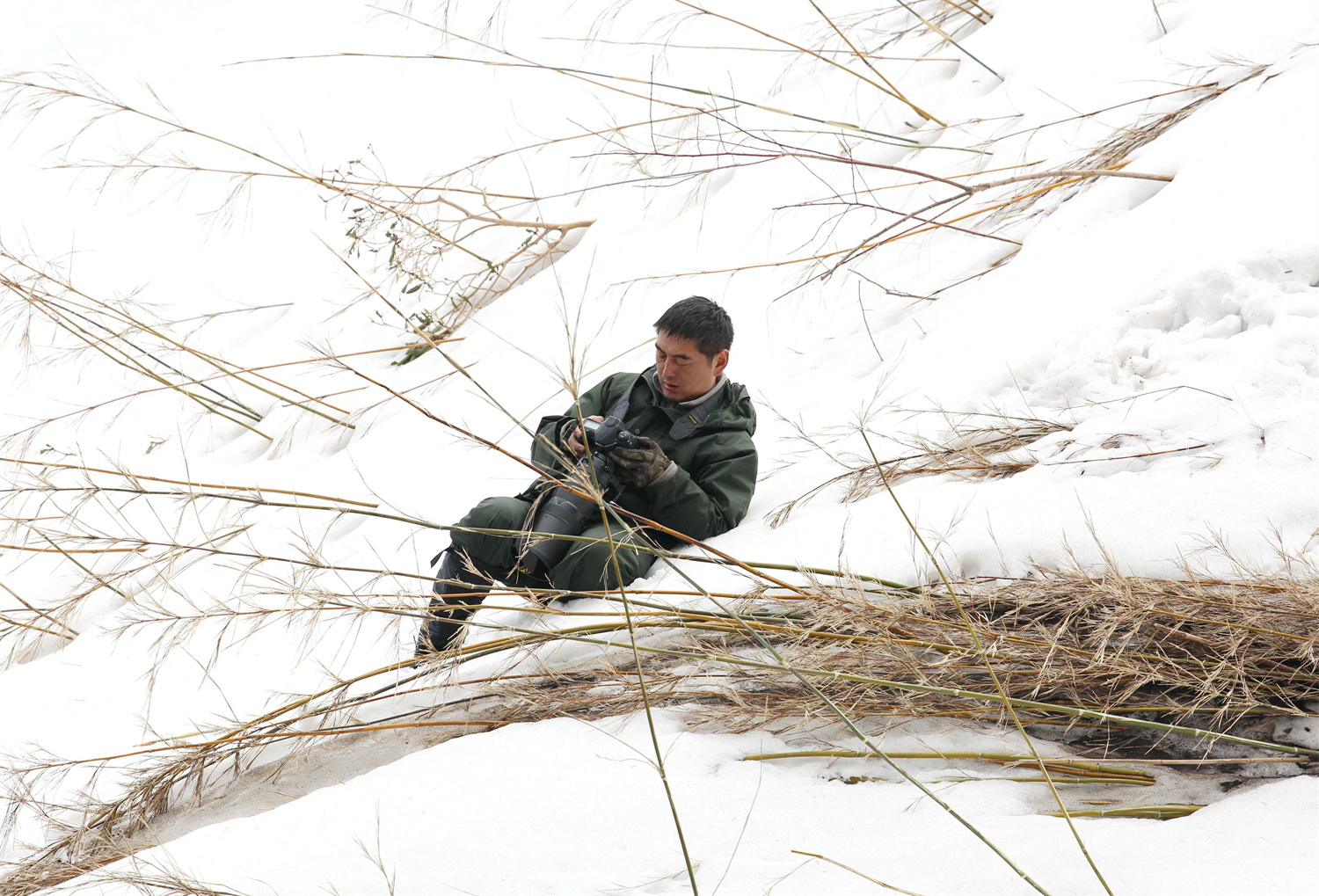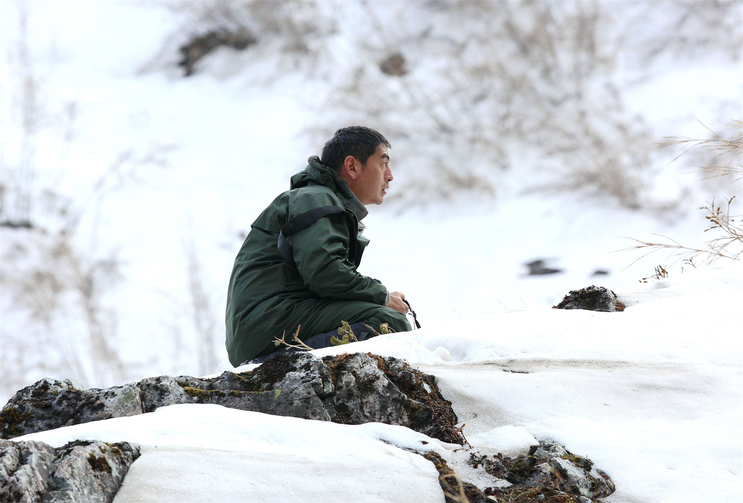白尾梢虹雉的繁殖地都在懸崖峭壁上,從營(yíng)地到巢址的路都是陡坡和懸崖,再加上下雪,有些地段積著厚厚的雪,每次去蹲守都是一路艱辛,一路驚險(xiǎn)。王斌說(shuō),下雪的時(shí)候,大雪會(huì)把竹子全部壓倒,踩在上面非常難走、非?;袝r(shí)候可能上去一步就會(huì)往后滑三四步。不同的巢址,走的路程也不一樣,正常情況下要走一個(gè)多小時(shí),遠(yuǎn)一些的地方可能要走兩個(gè)多小時(shí)。