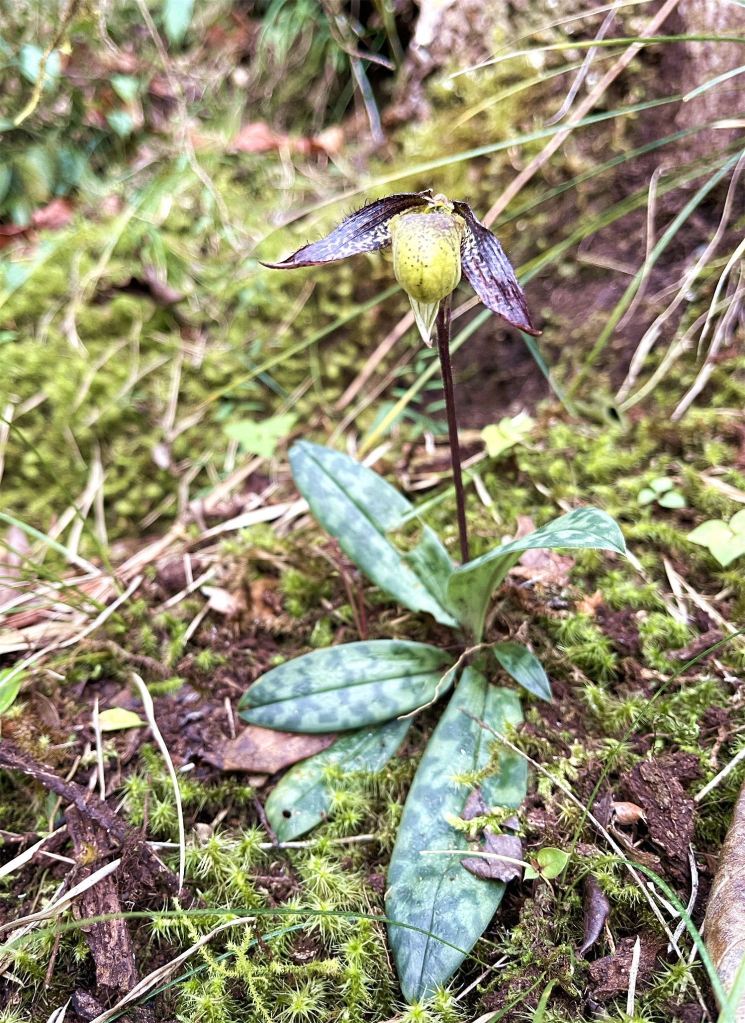 2023年4月,在一次尋找目標(biāo)物種麗江杓蘭和離萼杓蘭的過(guò)程中,王斌無(wú)意中拍到了一朵不知名的蘭花,他把蘭花的照片發(fā)給昆明植物研究所的蘭花研究專家,經(jīng)專家鑒定后確認(rèn),這是國(guó)家一級(jí)保護(hù)植物彩云兜蘭,屬瀘水新分布種。