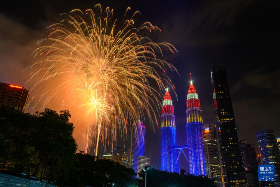 這是8月31日在吉隆坡的馬來西亞國家石油公司雙塔附近拍攝的焰火表演。當(dāng)日,馬來西亞舉行多種活動慶祝獨立67周年。新華社發(fā)(張紋綜 攝)