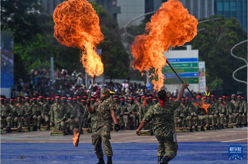8月31日,在馬來西亞普特拉賈亞,軍人在馬來西亞獨立67周年慶典活動上表演。當(dāng)日,馬來西亞舉行多種活動慶祝獨立67周年。新華社發(fā)(張紋綜 攝)